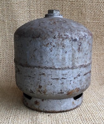 BOTIJÃO DE GÁS 2KG - 25 X 30 CM - BOTIJÃO VAZIO COM PONTOS DE FERRUGEM.