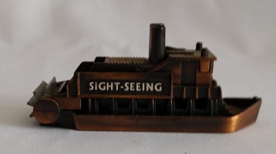 BARCO - APONTADOR MINIATURA EM METAL ACOBREADO - 4 X3 X 9 CM - BEM CONSERVADO.