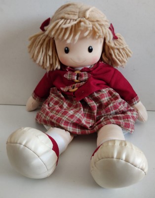 BONECA EM TECIDO COM ENCHIMENTO - CABELO EM LÃ - 60 X 38 CM - BEM CONSERVADA.