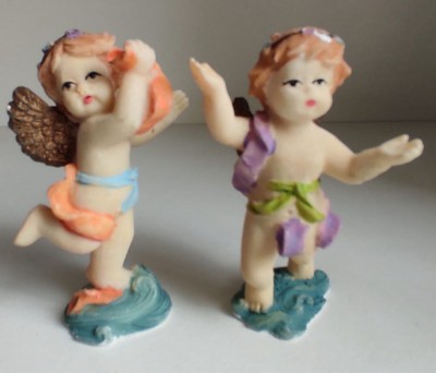 ANJO - PAR DE ANJOS EM RESINA PINTADA - 7 X 4 X 4 CM - BEM C0NSERVADOS.