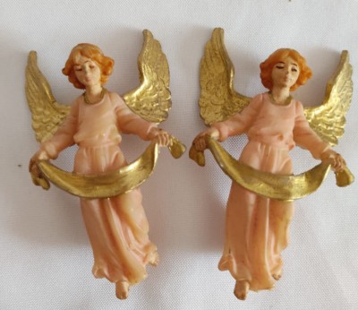 ANJO - PAR DE ANJOS EM RESINA PINTADA - 10 X 6 CM - BEM CONSERVADOS.