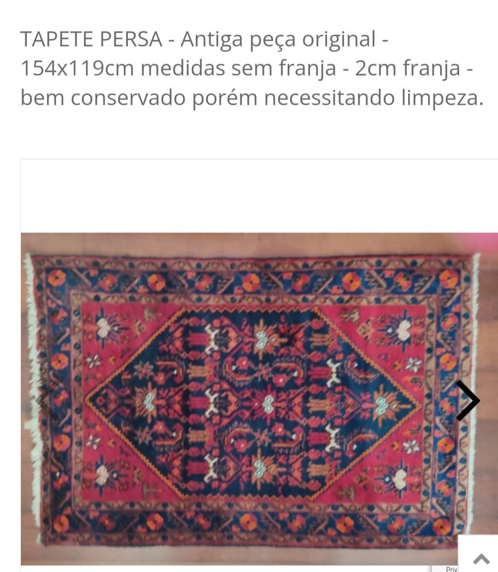 TAPETE PERSA - ANTIGA PEÇA ORIGINAL - 154 X 119 CM - MEDIDAS S/ FRANJA