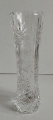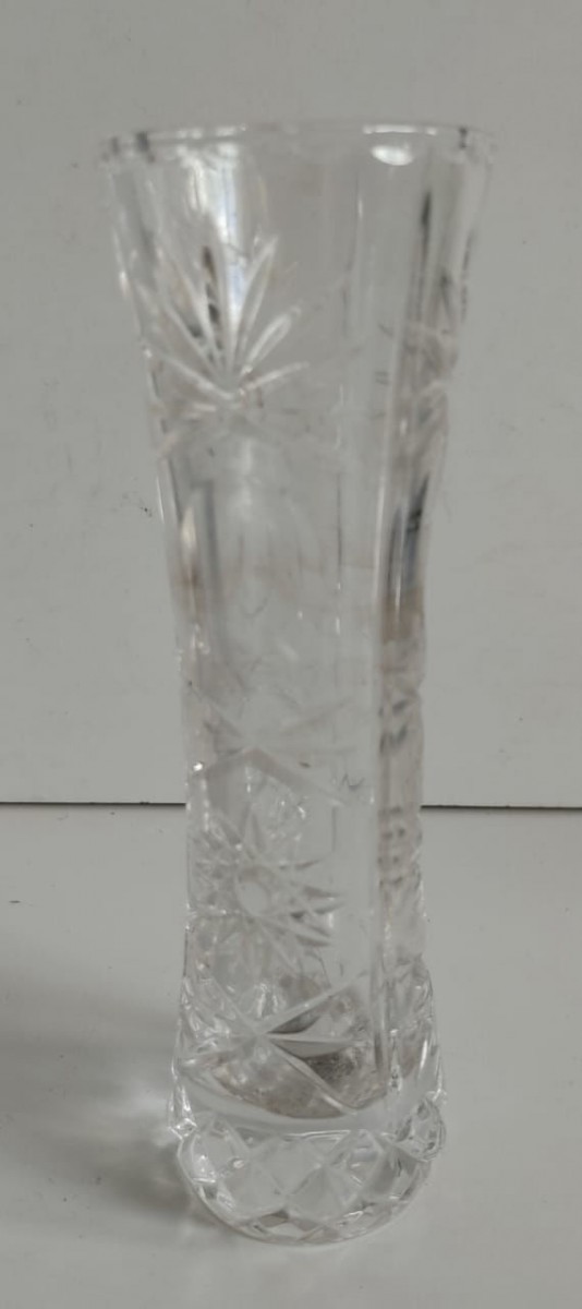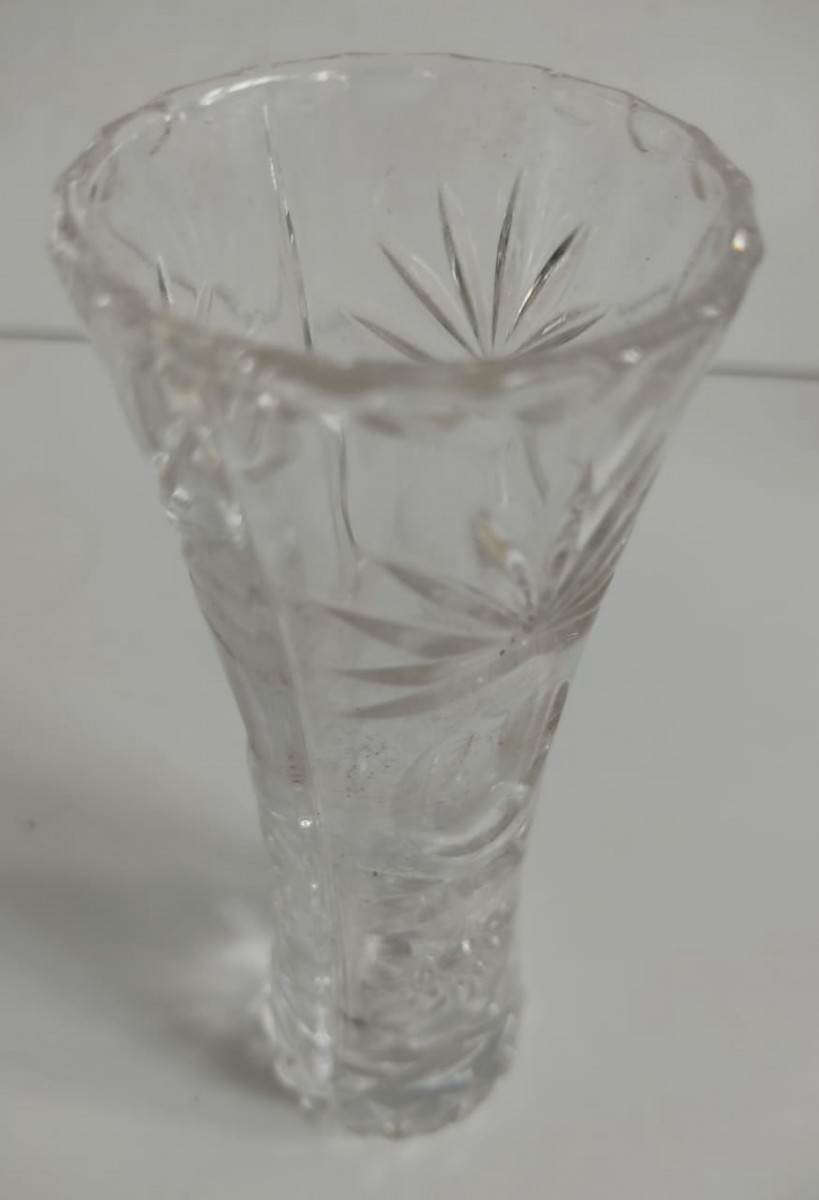 VASO EM CRISTAL PRENSADO COM DESENHOS EM ALTO RELÊVO - 17X5,5CM - BEM CONSERVADO.
