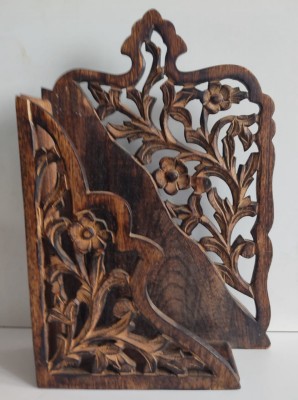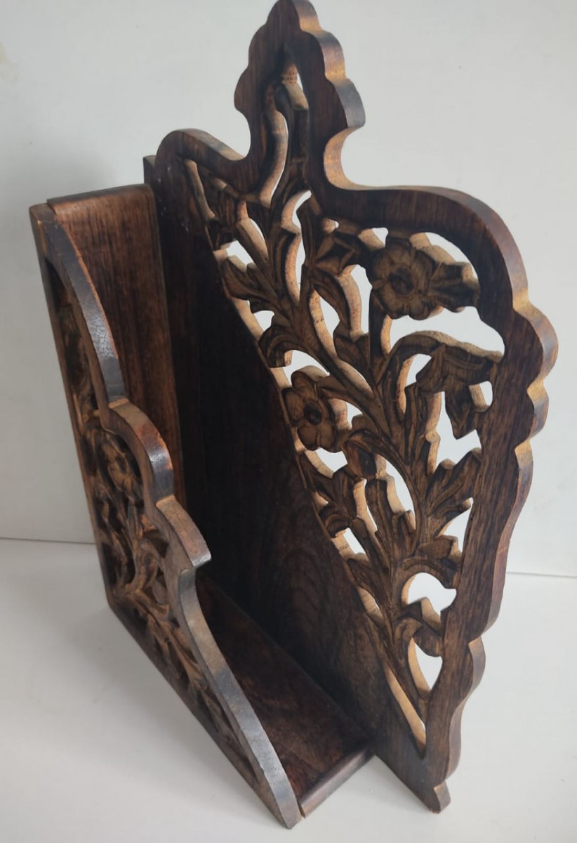 LINDO PORTA LIVROS EM MADEIRA ENTALHADO À MÃO - 38 X 25 X 8 CM - NOVA.