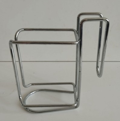 PORTA LEITE EM METAL CROMADO - 15 X 6,5 X 14 CM - BEM CONSERVADO.