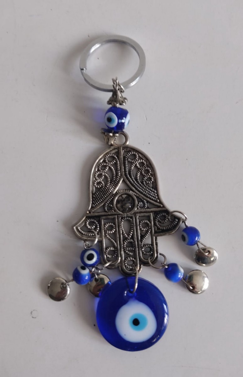 CHAVEIRO MÃO DE FÁTIMA COM OLHO GREGO, EM METAL - 15 CM - NOVO.