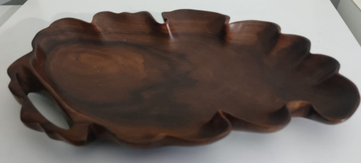 PORTA FRUTA SECA EM MADEIRA EM FORMATO DE FOLHA - 3 X 35 X 23 CM - N0VA.