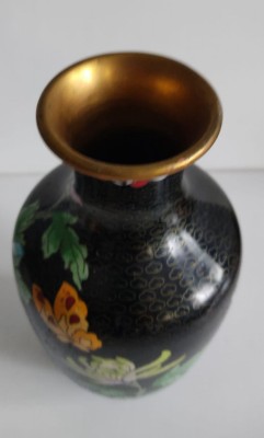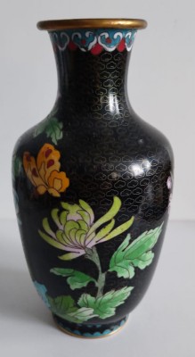 VASO CHINÊS DECORADO EM PORCELANA - 21X15X15CM - BEM CONSERVADO.