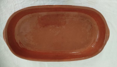 GRANDE E PESADA TRAVESSA OVAL EM CERÂMICA - 7 X 52 X 27 CM - BEM CONSERVADA.