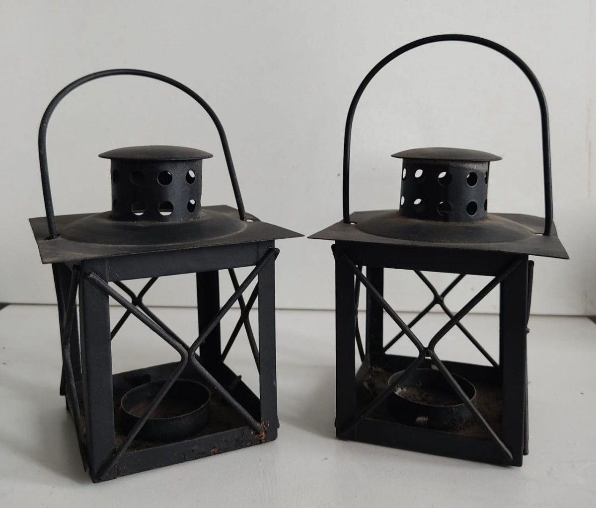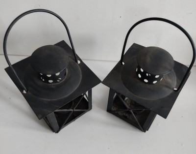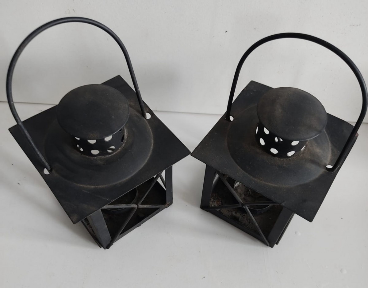 PAR DE PORTA VELAS EM METAL PINTADO - 9 X 10 X 10 CM- NECESSITANDO LIMPEZA.