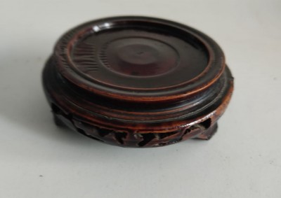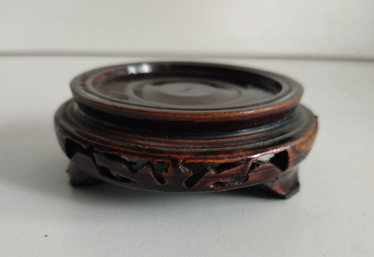 SUPORTE DE VASO EM MADEIRA COM DESENHOS FENESTRADOS - 4 X 9 DIAM. - BEM CONSERVADO.