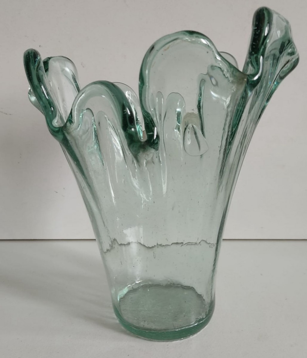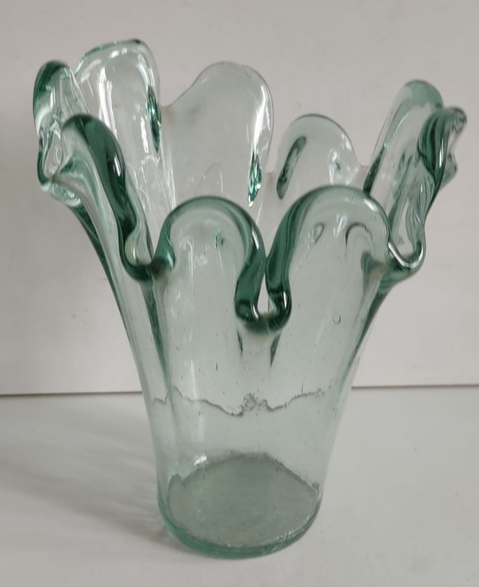 LINDO VASO EM MURANO ESVERDEADO - 1,400KG - 23 X 17 X 15 CM - BEM CONSERVADO.