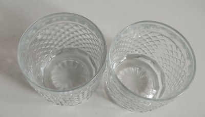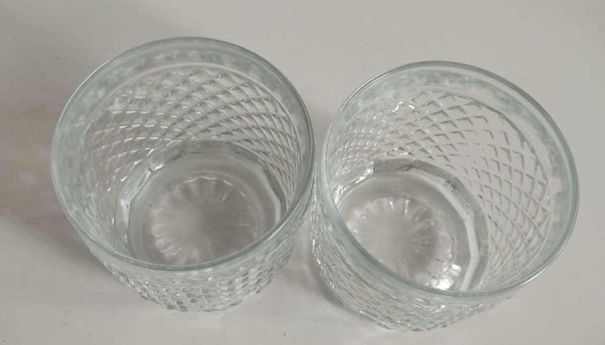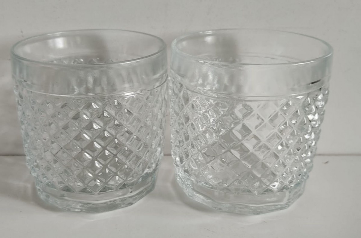 PAR DE COPOS EM VIDRO BICO DE JACA - 8 X 8 DIAM. - BEM CONSERVADOS.