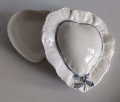 PORTA JÓIA EM PORCELANA FORMATO CORAÇÃO - 3 X 12 X 12,5 CM - BEM CONSERVADO.