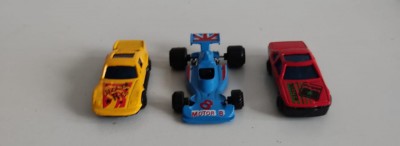 Lote composto por 3 mini carrinhos e metal pintado - aprox. 3 x 3 x 7 cm - novos.