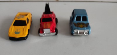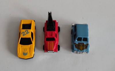 Lote composto por 3 mini carrinhos e metal pintado - aprox. 3 x 3 7 cm - novos.