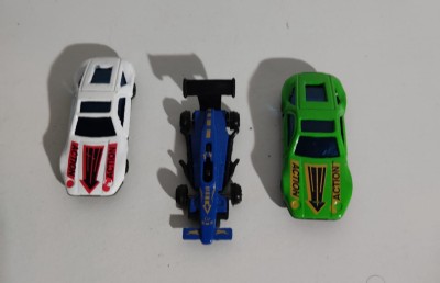 Lote composto por 3 mini carrinhos e metal pintado - aprox. 3 x 3 x 7 cm - novos.