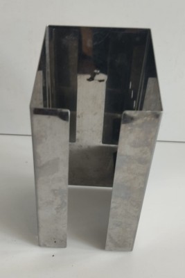 PORTA CAIXA DE LEITE EM INOX - 15 X 10 X 8 CM - COM LEVES RISCOS DO USO.