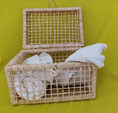 CESTA COM TAMPA FEITO EM PALHA - 15,5 X 27 X 19CM - NOVA,
