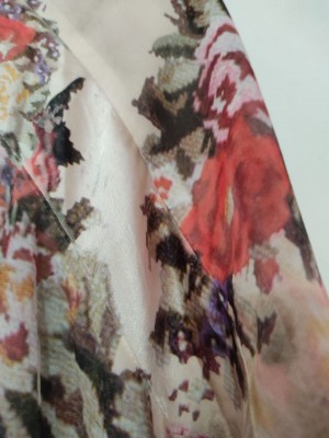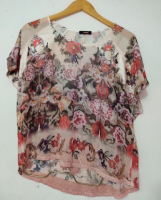 LAFEE - BLUSA FLORIDA EM TECIDO TIPO SEDA - APROX G - BEM CONSERVADA.