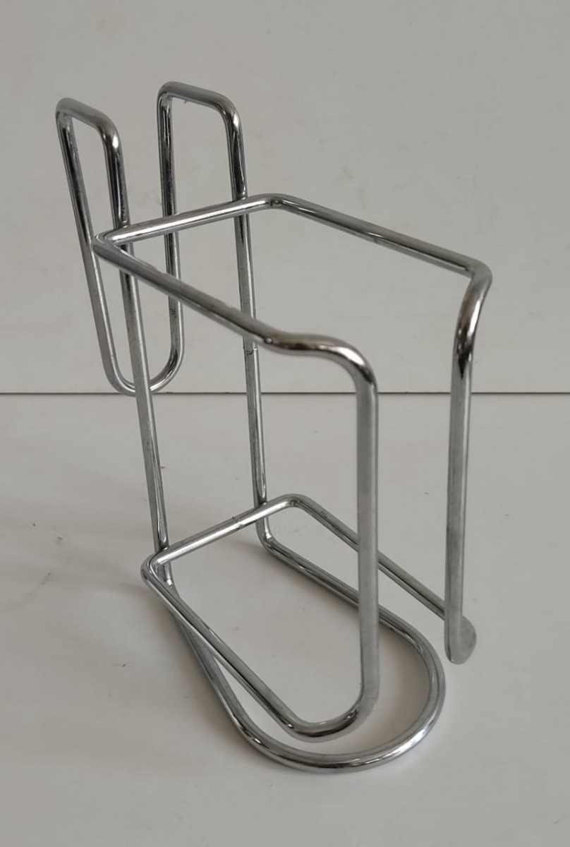 PORTA LEITE EM METAL CROMADO - 15 X 6,5 X 14 CM - BEM CONSERVADO.