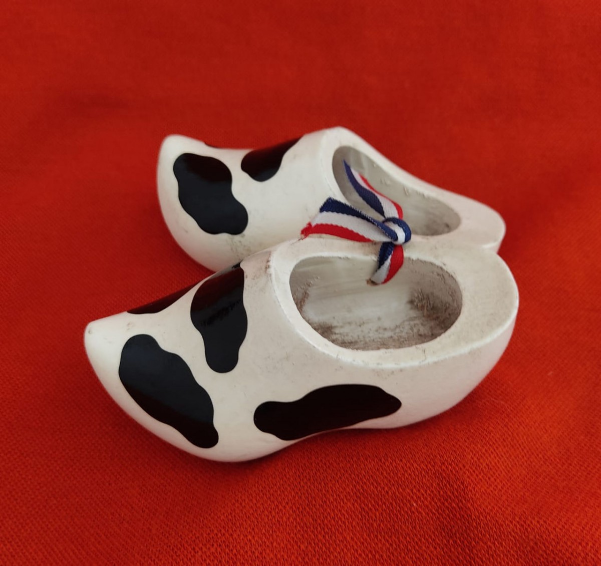 PAR DE ANTIGO SAPATOS HOLANDÊS EM MADEIRA PINTADO - 4 X 5 X 12CM - BEM CONSERVADOS.