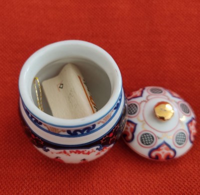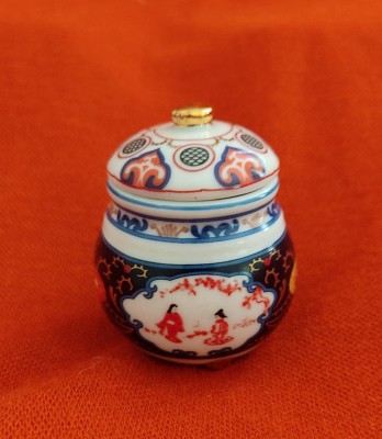 DEL PRADO - MINI PORTA JÓIA EM PORCELANA DECORADA -4 X 5 DIAM - COM ETIQUETA - NOVA.