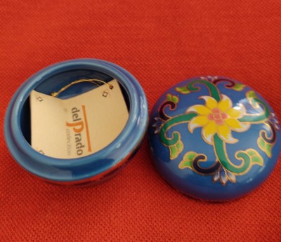DEL PRADO - MINI PORTA JÓIA EM PORCELANA DECORADA -4 X 4 DIAM - COM ETIQUETA - NOVA.
