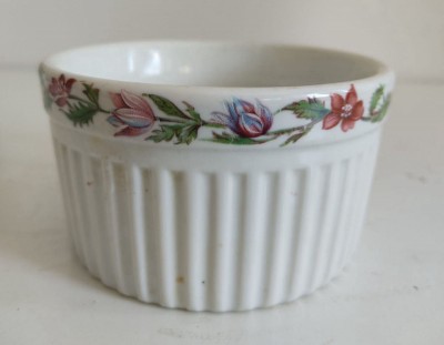 RAMEKIN EM PORCELANA COM BORDA PINTADA À MÃO - 5,5 X 10 DIAM - EM PERFEITO ESTADO.
