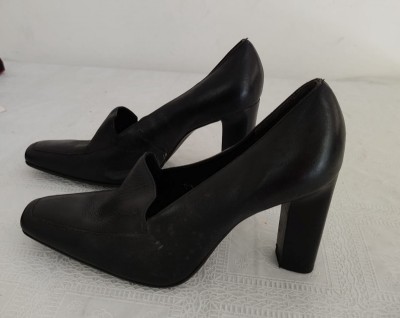 SAPATO EM COURO PRETO - N 37 - SALTO 9 - BEM CONSERVADO.
