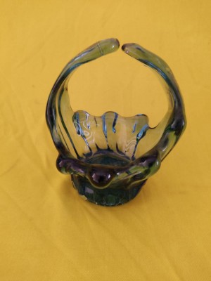 PEQUENA CESTA EM ESPESSO VIDRO AZULADO - 13 X 10 X 8 CM - BEM CONSERVADA.