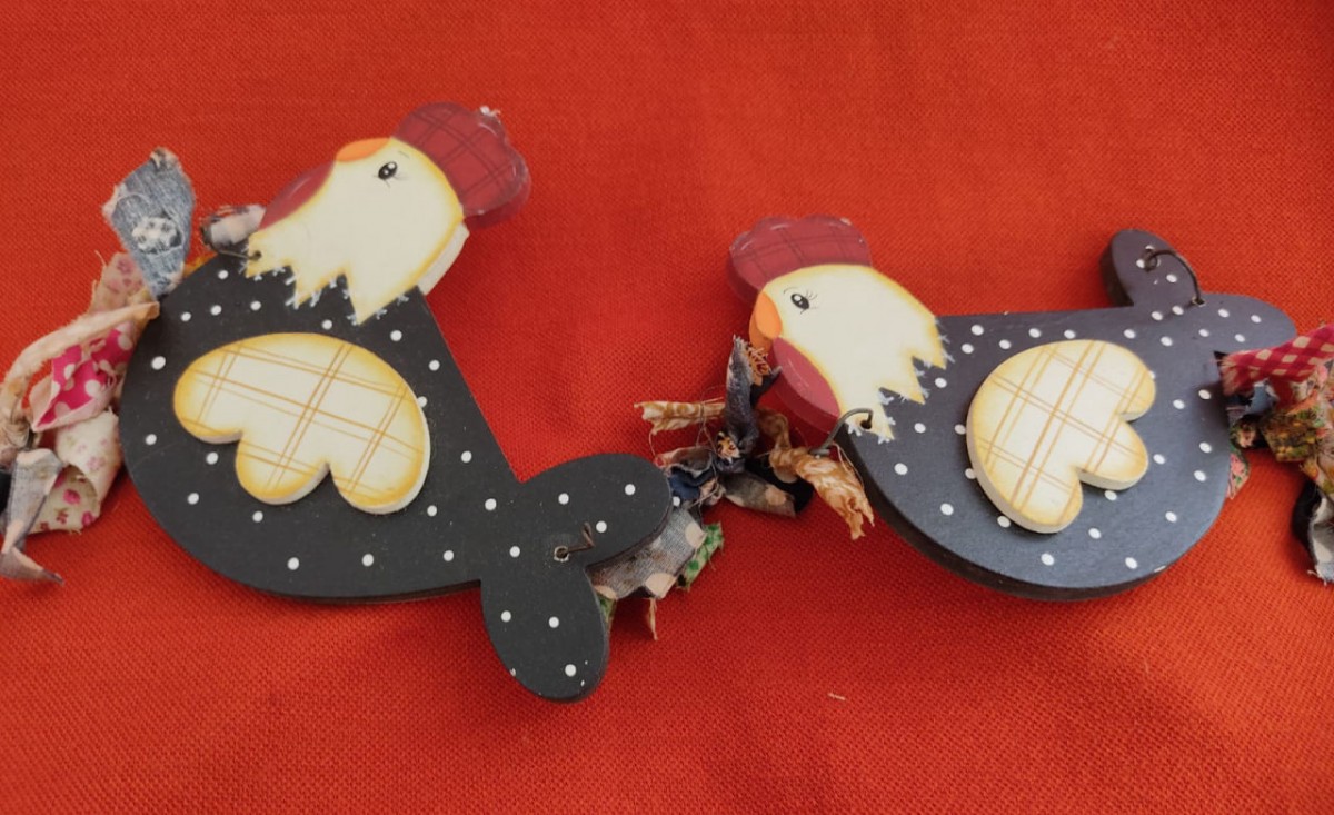 ENFEITE CONTENDO 4 PEÇAS EM MDF, TECIDO - 12 X 70 CM - NOVO.