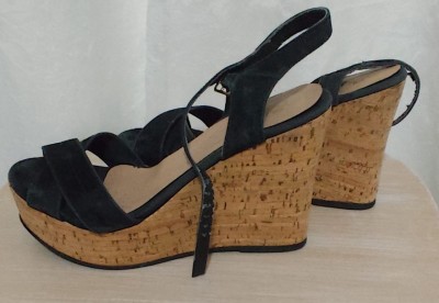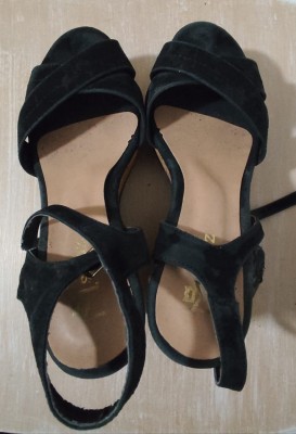SHUZ - SANDÁLIA ANABELA EM CAMURÇA - SALTO 11 - N 36 - BEM CONSERVADA.
